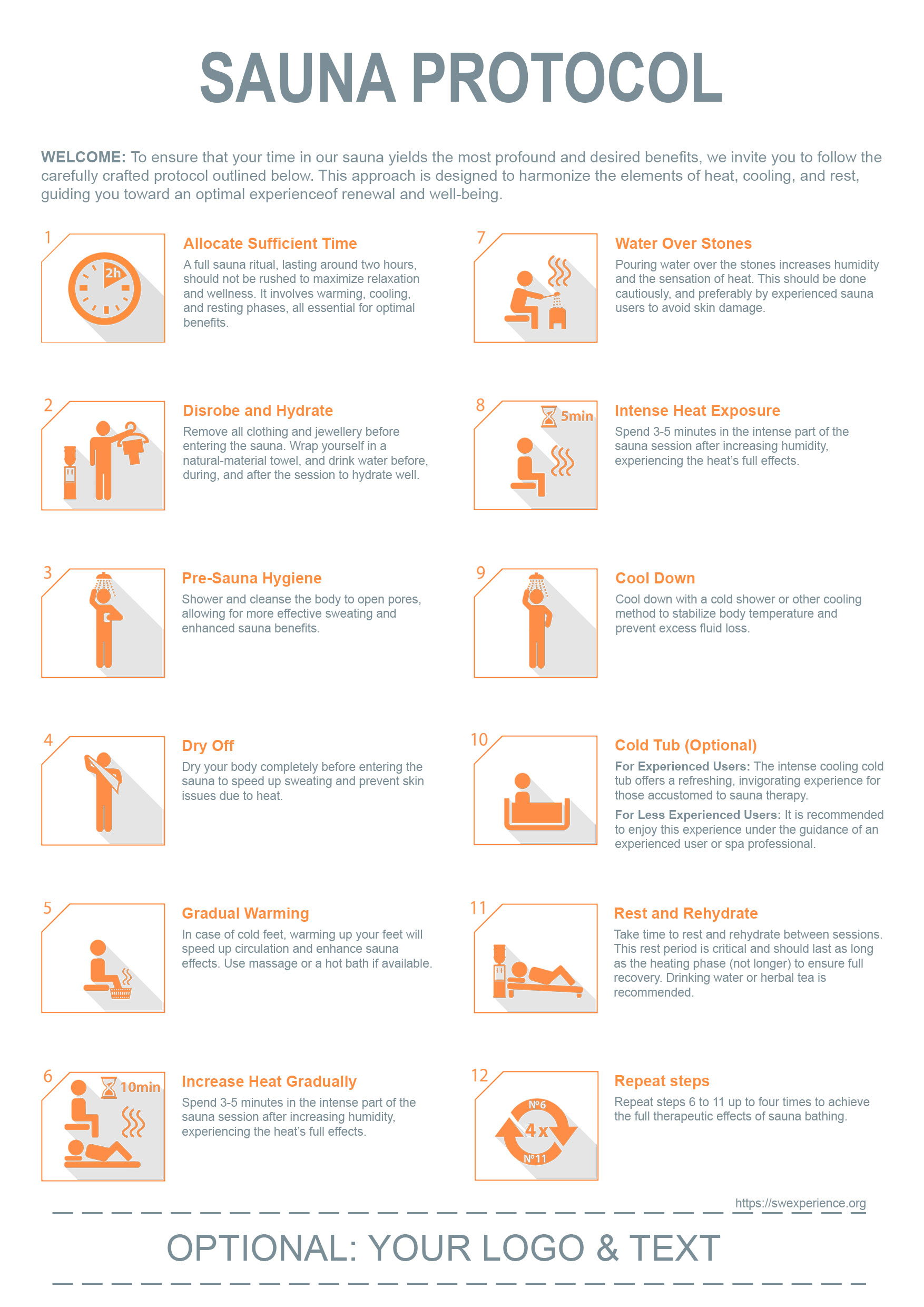 To enhance your guest's sauna experience, we encourage you to share the following protocol.